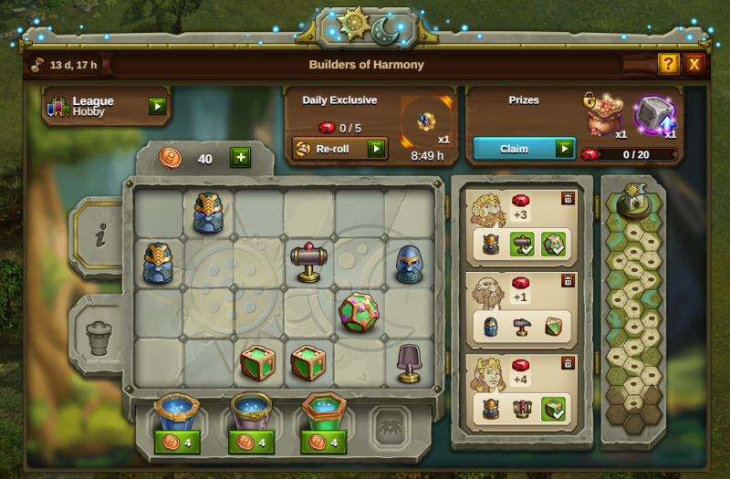 Je taak begint met de evenementmissie, waarmee je Dwergenfiches kunt verdienen . Je hebt Dwergenfiches nodig om stukken op je speelbord te plaatsen, ze te combineren en verschillende ruilaanbiedingen van het Dwergenevenement te vervullen.