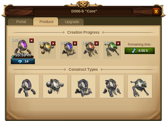 De Constructen werden ooit ontwikkeld door de "Hoge Mannen" om onvruchtbaar land weer vruchtbaar te maken – een tegenmaatregel voor de opkomst van de Amuni. Helaas was deze laatste creatie nog niet helemaal klaar toen de droogte in de steden van de Hoge Mannen arriveerde. De Constructen werden gecreëerd om zelfvoorzienend en voortdurend evoluerend te zijn, gewoon volgens de bevelen van de Hoge Mannen, maar uiteindelijk onafhankelijk leven te leiden. Dus toen de droogte het overnam en de Elvenar High Men bijna met uitsterven waren, stuurden ze de Constructs naar de hemel waar ze veilig in de loop van de tijd zouden moeten evolueren totdat ze op een dag, wanneer hun constructie automatisch zou worden voltooid, terug zouden komen naar Unur om te beginnen met de taak waarvoor ze waren gemaakt.