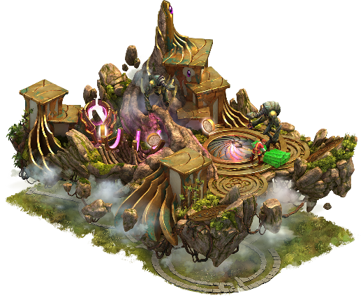 Toen de Constructs terugkeerden naar Unur, was er alleen woestijn zover ze konden zien. Hun scheppers waren nergens te bekennen – uitgestorven of verdwenen? Deze vraag bleef onbeantwoord. Dus begonnen de Constructen, verdrietig in hart en nieren maar vastbesloten om hun bestemming te vervullen, de vruchtbaarheid terug te brengen naar Unur, in stilte hopend dat als hun werk eenmaal klaar was, hun makers zouden terugkeren. Er kwam echter nooit iemand. De jaren verstreken, Unur herwon zijn vruchtbaarheid stap voor stap, talloze nieuwe soorten flora en fauna doken op het land op en de constructen evolueerden en diversifieerden nog verder. Toch verscheen geen van de machtige rassen die op Unur leefden voordat de grote droogte weer opdook. Dus begonnen de constructen hun zoektocht verder uit te breiden, met behulp van hun meest geëvolueerde drijvende eilanden om verder te kijken dan de grenzen van Unur, en uiteindelijk staken ze de grote oceaan over om een ander continent te vinden - het continent dat je Elvenar noemt. Toen ze op jullie continent aankwamen, ontdekten ze de woestijn die uit jullie stad begon te groeien en ook levensvormen die leken op die van de Hoge Mannen. Hadden ze eindelijk hun scheppers kunnen vinden?