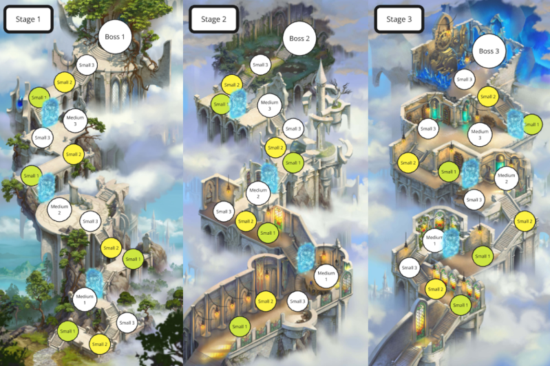 Zoals je weet, hebben we 3 stadia in de toren der eeuwigheid, en binnen deze stadia zijn er 3 verschillende soorten ontmoetingen - kleine (1, 2, 3), gemiddelde (1, 2, 3) en eindbazen.