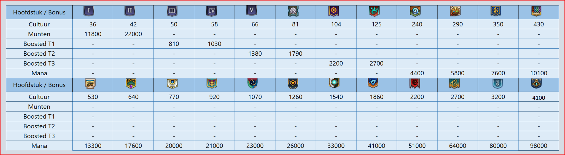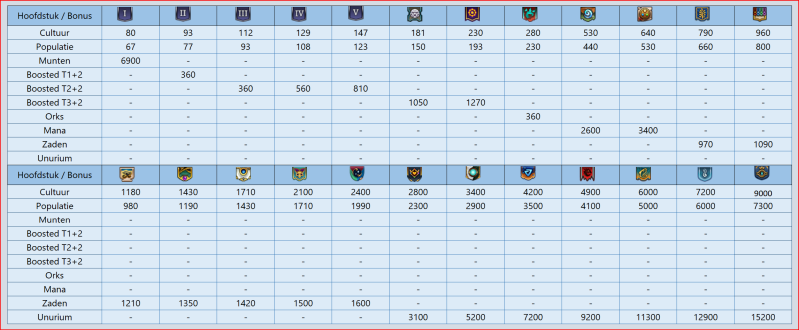 Niveau /kosten Keuze- Beloningen