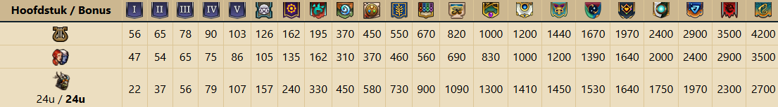 Niveau /kosten Keuze- Beloningen