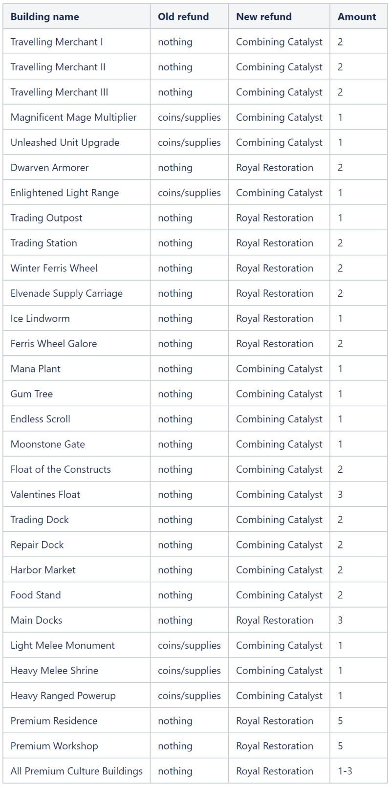 Als je een oud wonder verkoopt, verdien je nu 1 koninklijke restauratie en 2 combinatieversnellers per niveau van je oude wonder.
