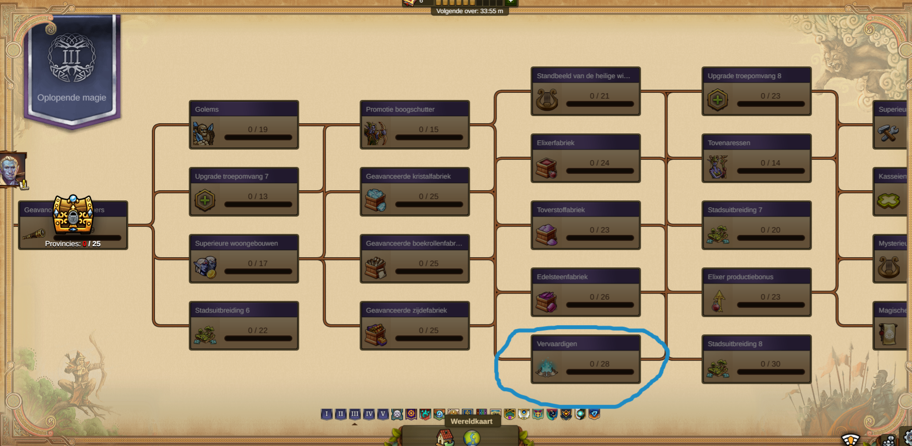 Hoofstuk 3 : vervaardigen moet vrijgespeeld worden, 13de hokje na verkenner met dat blauwe icoontje, kost 28 KP, een leert je hoe je in de magische academie dingen moet vervaardigen